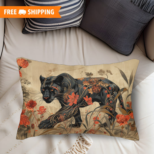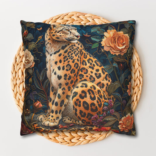 William Morris Inspired Botanical Cheetah Pillow | Cottage-core Pillow Design
