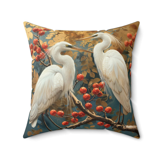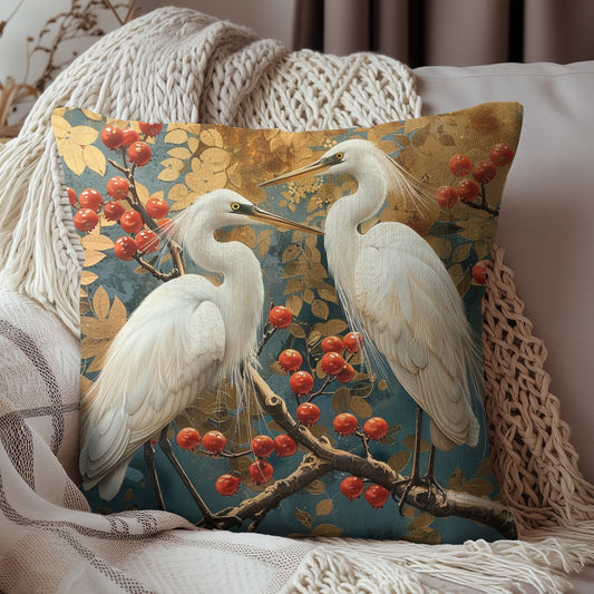 Egret Birds Decorative Pillow Vietnamese Art Style | Cottage-core Pillow