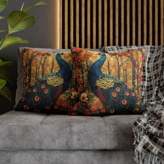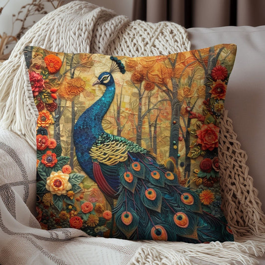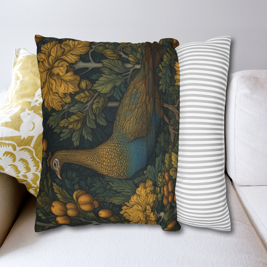 Forest Peacock Decorative Pillow Morris Inspired | Cottage-core Pillow