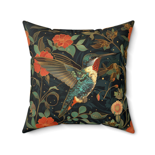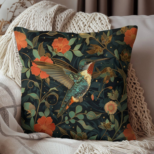 Art Deco Hummingbird Decorative Pillow Morris Inspired | Cottage-core Pillow