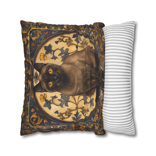 Art Deco Burmese Cat Decorative Pillow | William Morris Inspired | Cottage-core Pillow