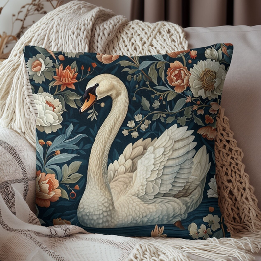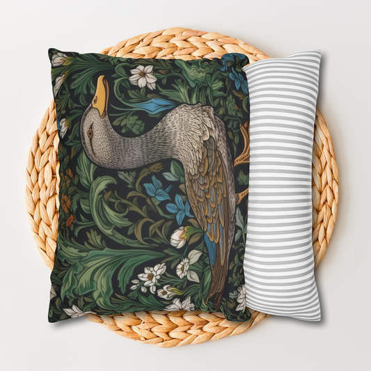Botanical Swan Pillow: William Morris Style Decorative Throw Pillow