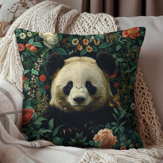 Botanical Panda Decorative Pillow Morris Inspired | Cottage-core Pillow