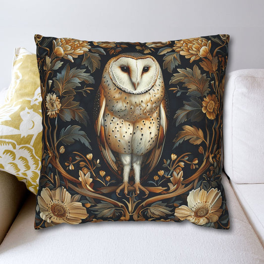 Forest Barn Owl Decorative Pillow Morris Inspired Cottage-core Pillow