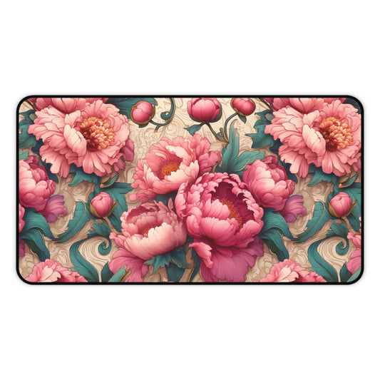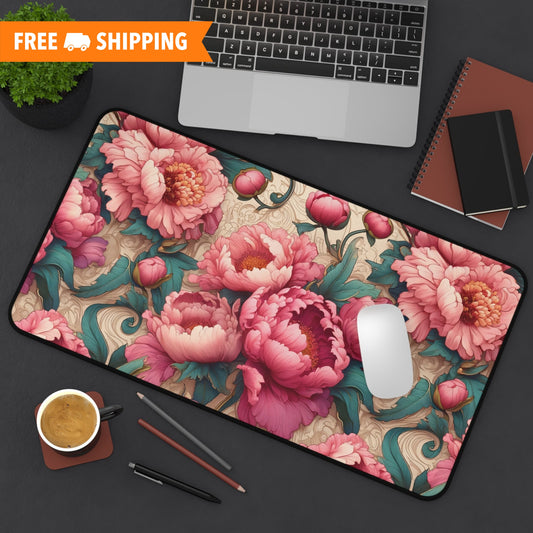 William Morris Inspired Pink Peony Desk Mat, Office Decor Gift Desk Mats