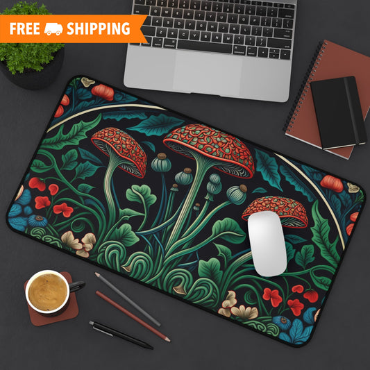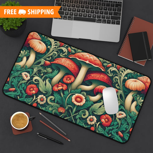 William Morris Inspired Wild Mushroom Cottagecore Desk Mat | Office Decor GiftDesk Mats