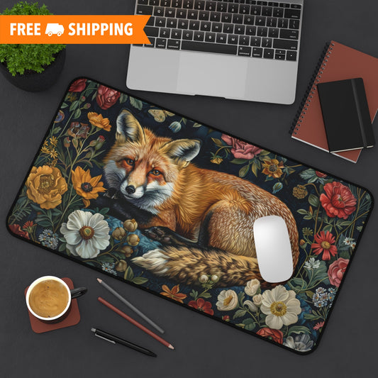 Cottage-core Fox Desk Mat 2 Sizes | Aesthetic Floral Botanical Fox Desk Mat | Office Decor GiftDesk Mats