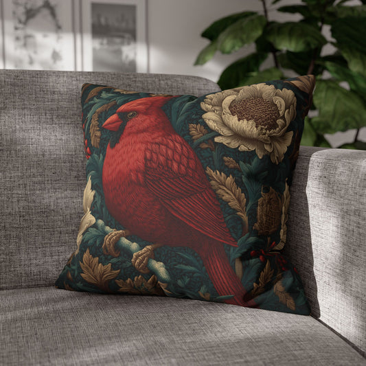 Vintage Cardinal Floral Pillowcase, William Morris Style Red Bird Cushion for Cozy Home Decor