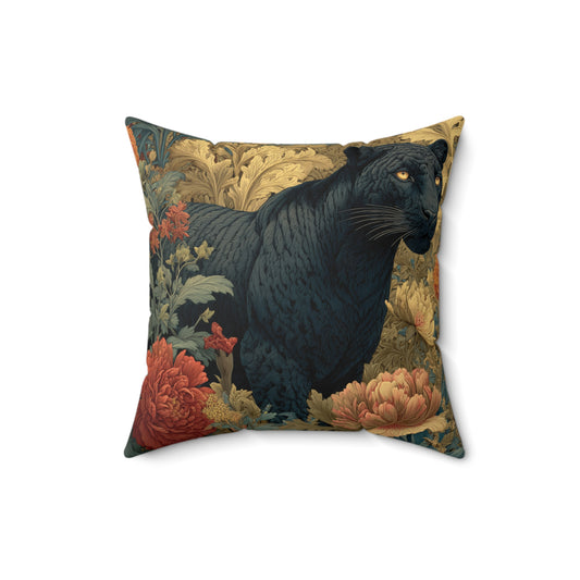 Black Panther Floral Decorative Pillow, Botanical Vintage Throw Pillow