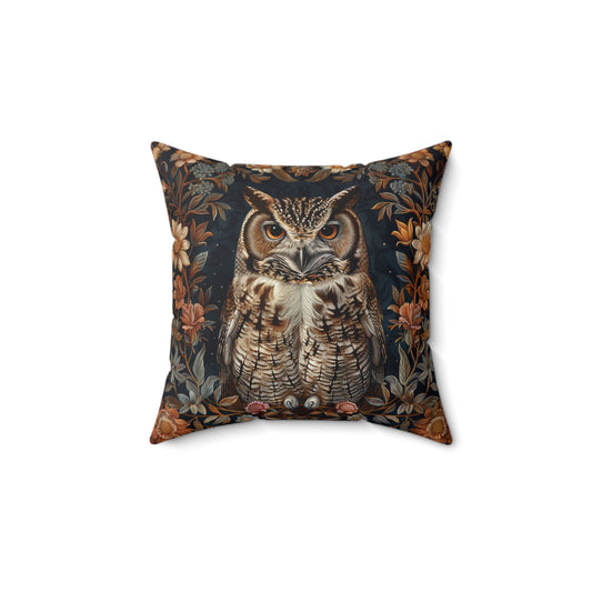 Enchanted Forest Owl Pillow, Decorative Fall Square Pillow, Home Accent, William Morris Inspired