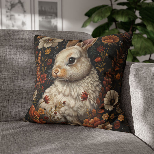 Floral Bunny Pillowcase, Cozy Home Decor, Cute Easter Gift, Soft Throw Pillow Cover, Spring Decoration