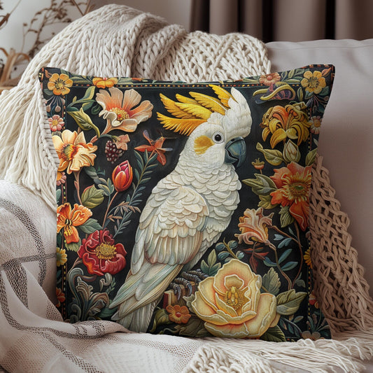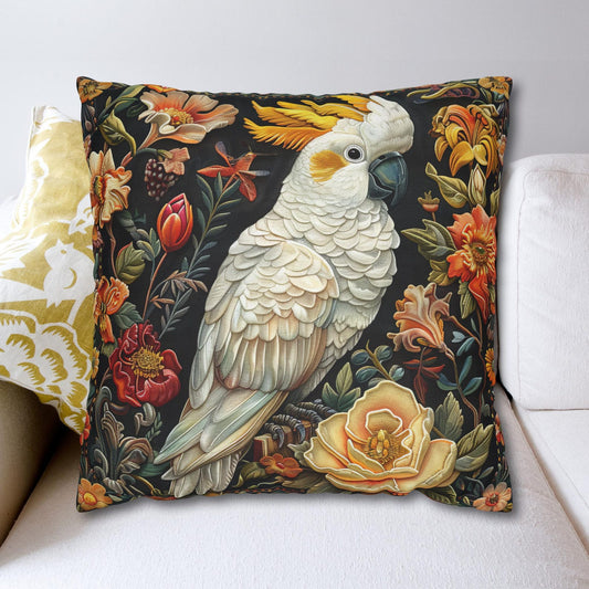 Art Deco Cockatoo Pillow: Fall Floral Accent Cushion
