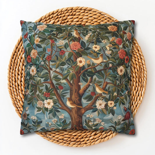 William Morris Tree of Bird Pillow: Art Nouveau Cottagecore Cushion