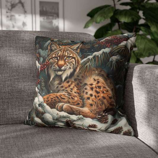 William Morris Inspired Snow Lynx Crouched Pillowcase