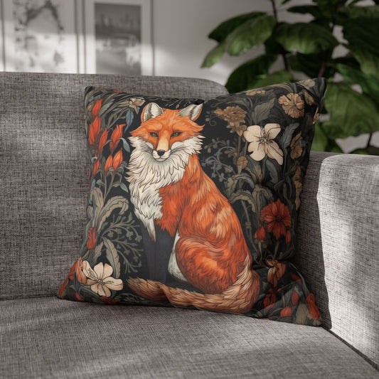William Morris Inspired, Botanical Floral Fox Pillowcase, Fox Cottagecore Home Decor Pillowcase
