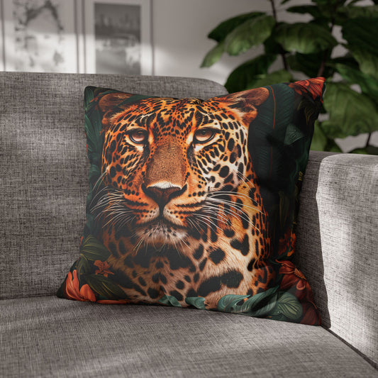 William Morris Inspired Botanical Leopard Pillowcase, Farmhouse Decorative Leopard Pillowcase