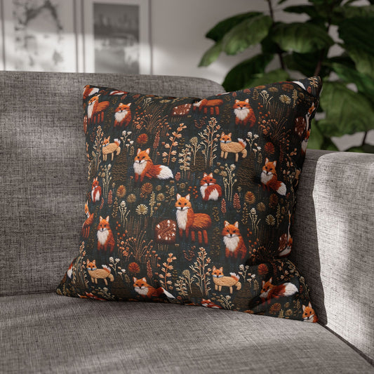 Woodland Foxes Embroidery-Style Pillowcase