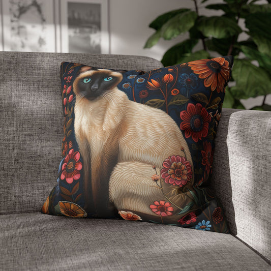 William Morris Inspired Siamese Cat Flower Garden Pillowcase