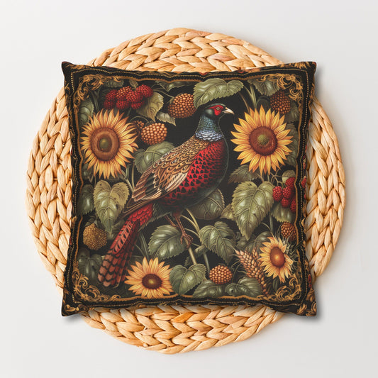 William Morris Inspired Pheasant Sunflowers Art Deco Print Pillowcase