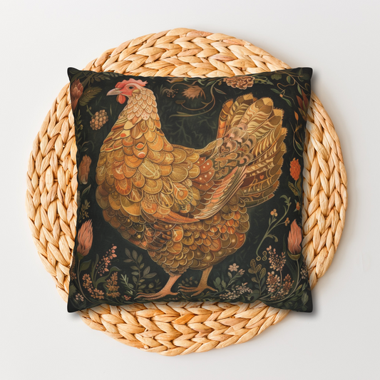 William Morris Inspired Hen Vintage Decor, Cottagecore Design Pillowcase