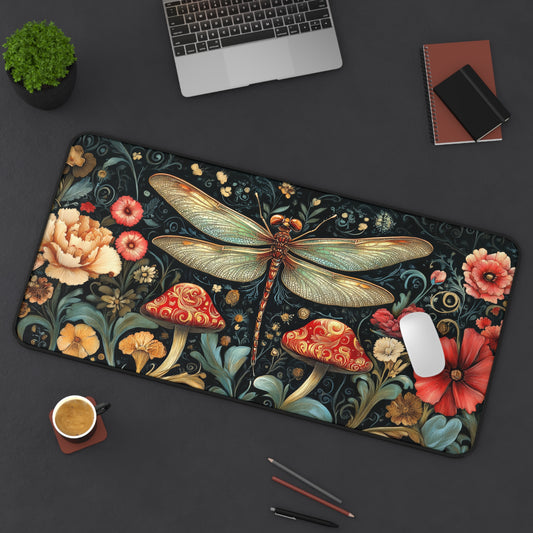 Art Nouveau Style Dragonfly Desk Mat, Whimsical Forest William Morris Inspired, Victorian Vintage Art, Home Office Decor, Unique Mouse Pad