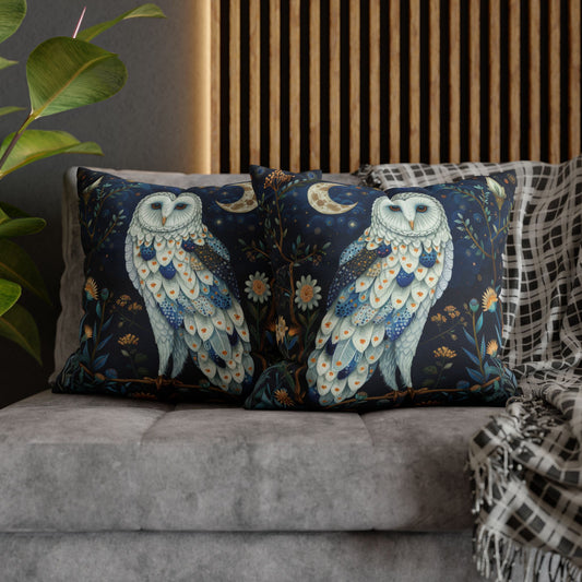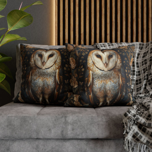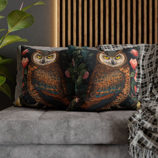William Morris Inspired, Forest Floral Art, Decorative Barn Owl Cushion, Spun Polyester Square Pillowcase