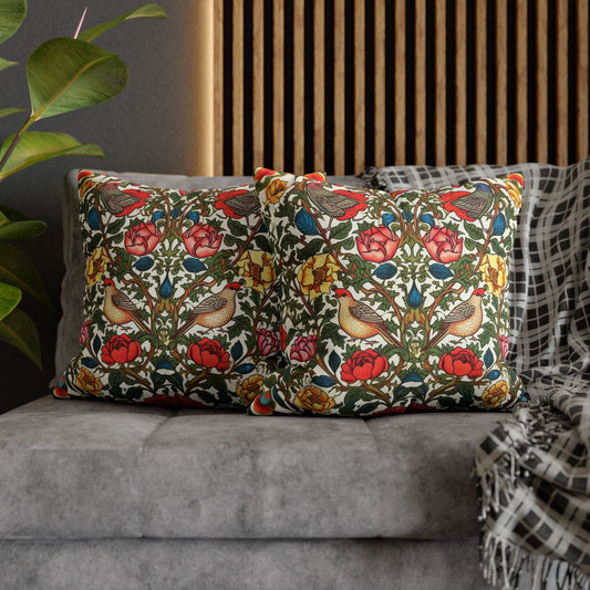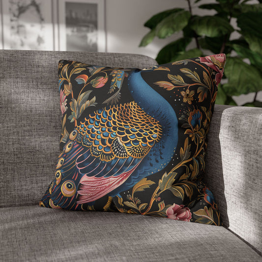 William Morris Inspired Peacock Pillowcase, Forest Floral Art, Peacock Spun Polyester Square Pillowcase