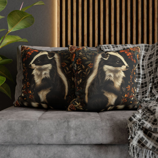 Botanical Badger Pillow: William Morris Inspired Art Deco Cottagecore Decor