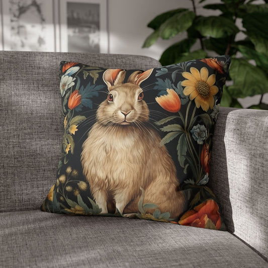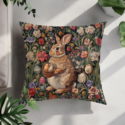 William Morris Inspired Easter Bunny Forest Florals Square Pillow, Throw Pillow, Home Decor, Accent Pillow, Easter Decor