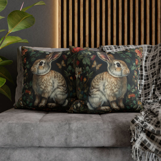 William Morris Inspired Botanical Bunny Rabbit Pillowcdase, Cottagecore Art Nouveau Pillow Design, Gift for Her