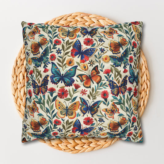 Colorful Spring Butterfly Embroidery-Style Pattern Pillowcase