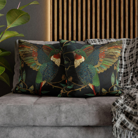Art Nouveau Vibrant Hummingbird Pillow, Nature-inspired Home Decor, Throw Pillow for Living Room, Garden Party Gift, Colorful Cushion
