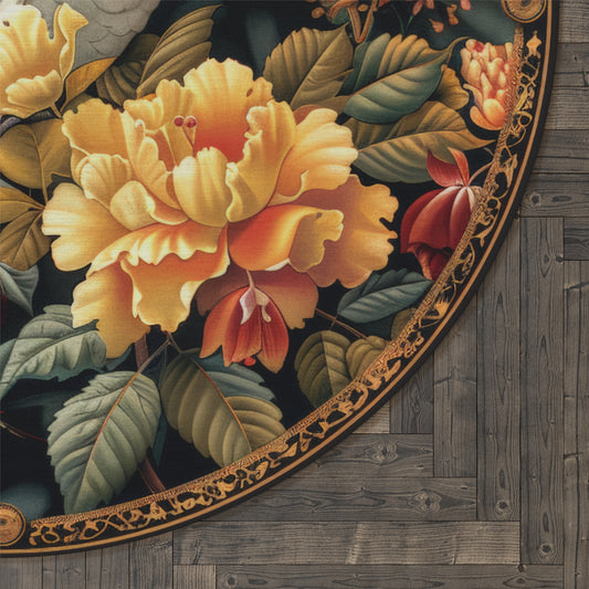 Art Deco Yellow-crested Cockatoo Fall Flowers Round Rug, Home Decor Accent, Area Carpet, Boho Chic Floor Mat, Gift for Bird Lovers