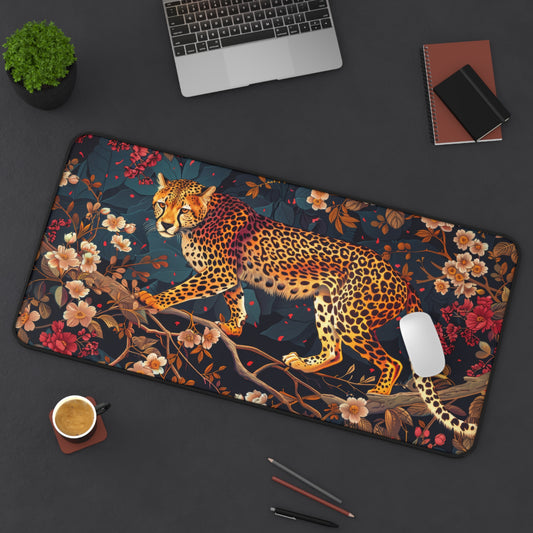 Desk Mat, Art Deco Cheetah Florals William Morris Inspired Work Mat, Mouse Pad, Office Desk Accessories, Dorm Decor, Home Office Supplies