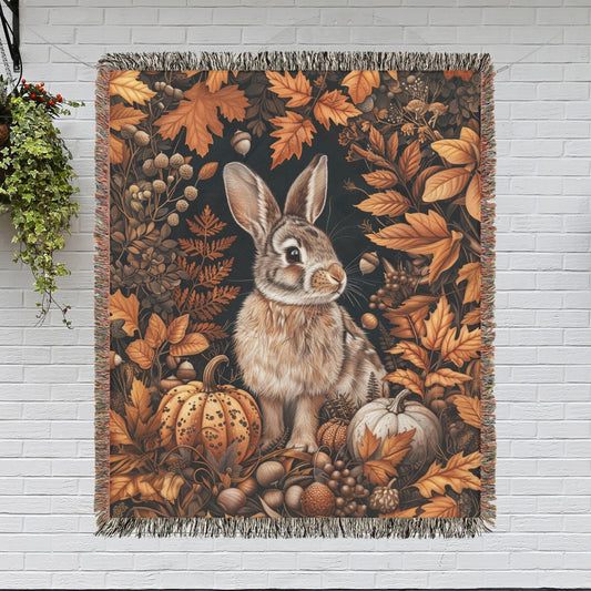 Regular price From $67.50 USDRegular priceUnit price / per$84.38 USDSale price From $67.50 USDCotton Woven Blanket, Bunny Fall Forest Cozy Home Decor, William Morris Inspired Throw, Autumn Lap Blanket, Soft Sofa Cover