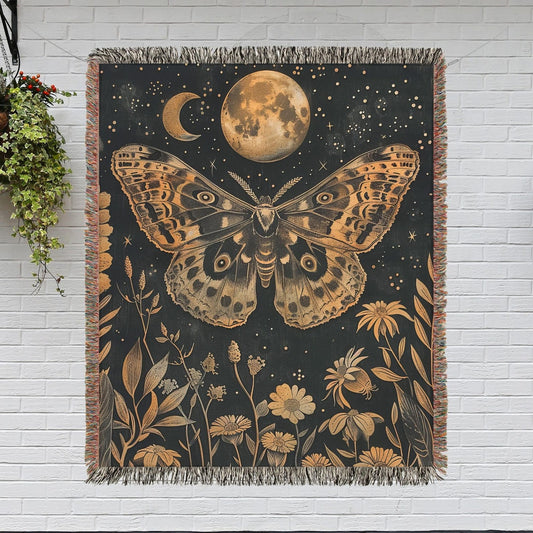William Morris Inspired Night Moth Art Nouveau Woven Blankets, Cozy Home Decor Cotton Blanket
