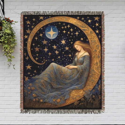 Regular price From $67.50 USDRegular priceUnit price / per$84.38 USDSale price From $67.50 USDVintage Lady On The Moon With Stars William Morris Inspired Woven Blankets, Cozy Home Decor Jacquard Cotton Woven Blanket