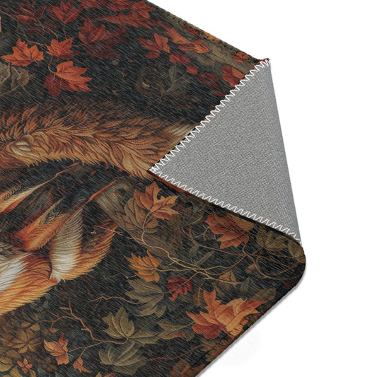 Fall Autumn Woodland Fox William Morris Inspired Rectangle Area Rug, Stylish Fox Living Room Carpet Decor, Home Accent Rug for Fox Lovers