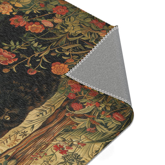 Black Cat Floral Garden, Art Deco Style Home Decor, Black Cat Rectangle Area Rug Living Room Carpet Decor