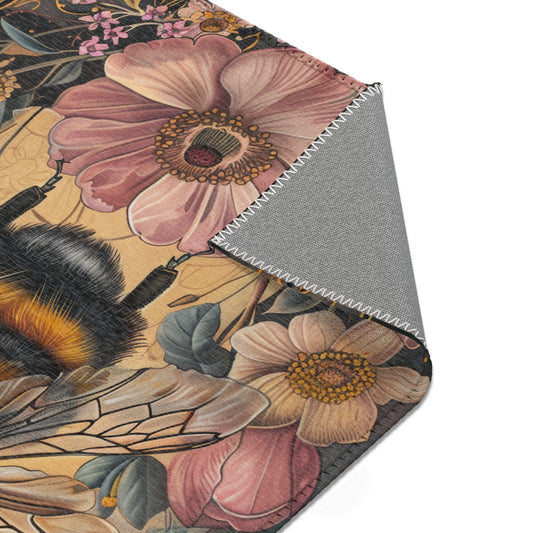 Vintage Bumblebee Rectangle Area Rug, Cottagecore Living Room Carpet, Floral Room Art Deco Rug, Housewarming Gift, Moms Gift