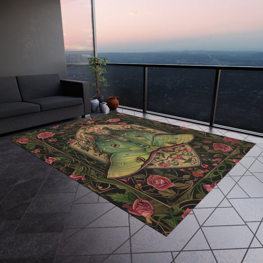 Outdoor Rug - Woodland Luna Moth Rose Garden Aesthetic Rectangle Area Rug | Woodland Luna Moth Rug | Goth Home Decor