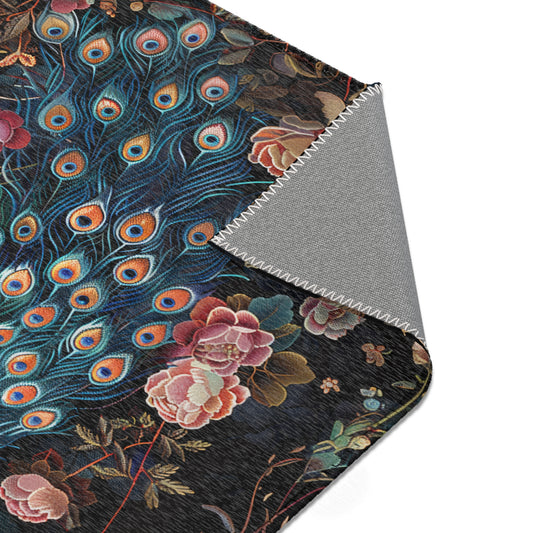 Peacock Art Deco Rectangle Area Rug, Stylish Peacock Living Room Carpet Decor, Home Accent Rug for Peacock Lovers, Peacock-Inspired Room