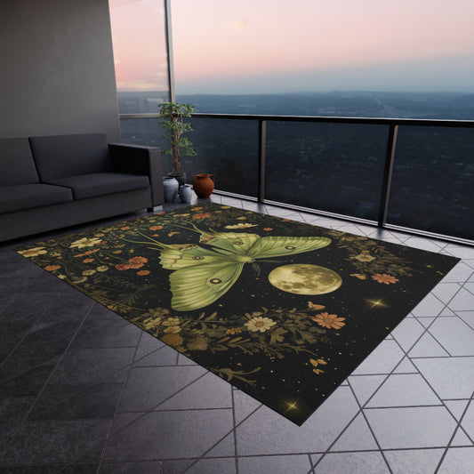 Outdoor Rug - Luna Moth Full Moon Aesthetic Rectangle Area Rug | Woodland Luna Moth Rug | Goth Home Decor | Witchy Home Decor