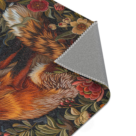 Botanical Fox Rectangle Area Rug, Cottagecore Living Room Carpet, Floral Room Art Deco Rug, Housewarming Gift, Moms Gift