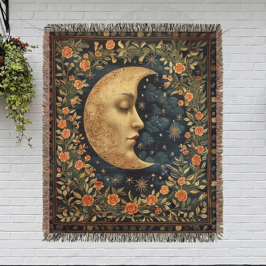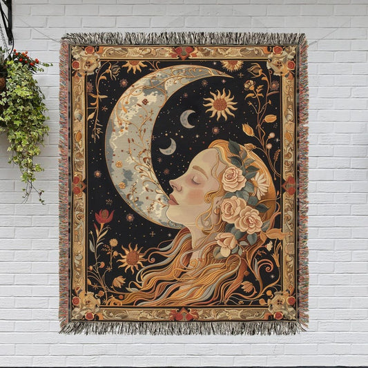 Regular price From $67.50 USDRegular priceUnit price / per$84.38 USDSale price From $67.50 USDLady And Crescent Moon In The Style Of William Morris Inspired Woven Blankets