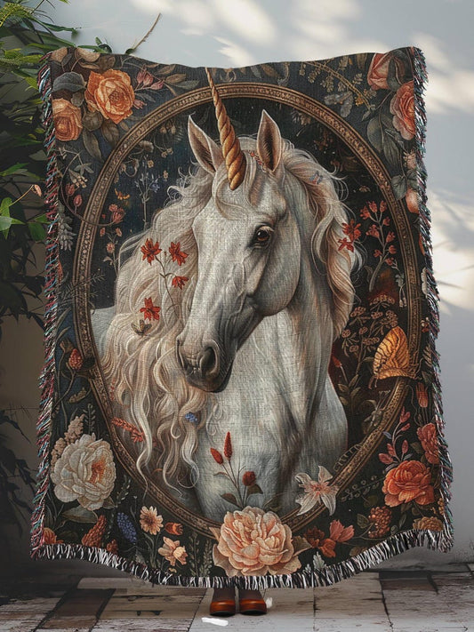 Regular price From $67.50 USDRegular priceUnit price / per$84.38 USDSale price From $67.50 USDVintage Botanical Unicorn Woven Blanket, Cozy Fall Home Decor, William Morris Inspired Cotton Blanket
