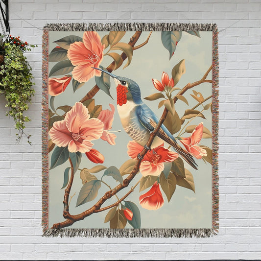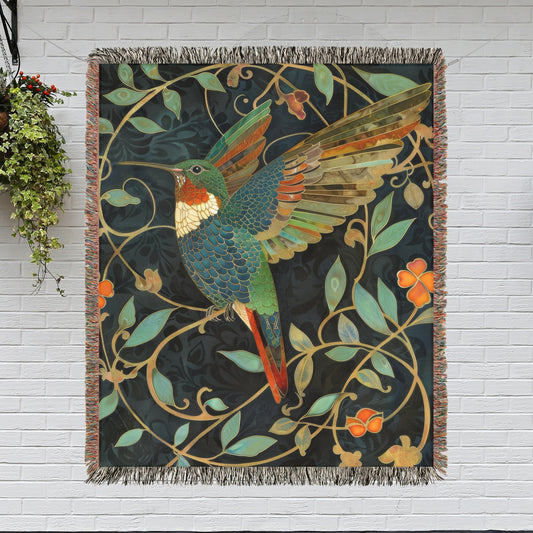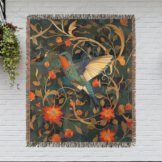 Art Deco Hummingbird William Morris Inspired Woven Blankets, Cozy Home Decor Jacquard Cotton Woven Blanket