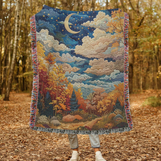 Autumn Sky Cloud Fall Scene Woven Blanket, Fall Cozy Home Decor, William Morris Inspired Cotton Blanket