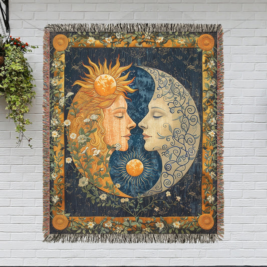 The Sun And The Moon In The Style Of William Morris Inspired Woven Blankets