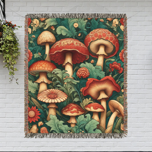 Regular price From $67.50 USDRegular priceUnit price / per$84.38 USDSale price From $67.50 USDWilliam Morris Inspired Wild Mushrooms Art Deco Woven Blankets, Cozy Home Decor Jacquard Cotton Woven Blanket